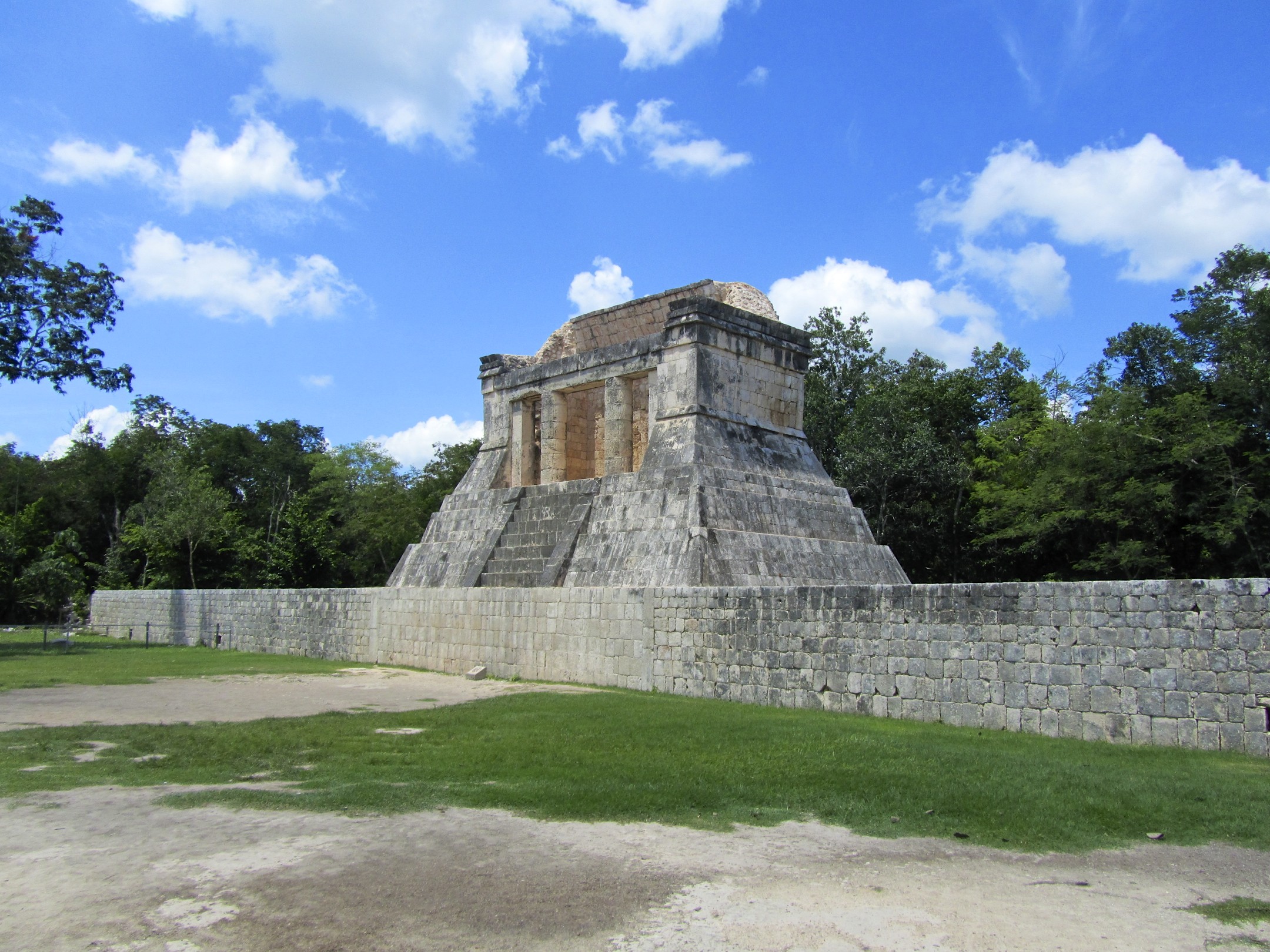 After taking some time to appreciate El Castillo, our guide took us to a shaded area and explained more about Mayan culture. The Mayans had different ideas of beauty than we do now. For example, they would apply pressure with wooden boards to the heads of babies to create a pointy skull, mimicking the gods. They would also implant stones on their teeth. Mothers would carry their babies on their hips in order to create bowed legs.
