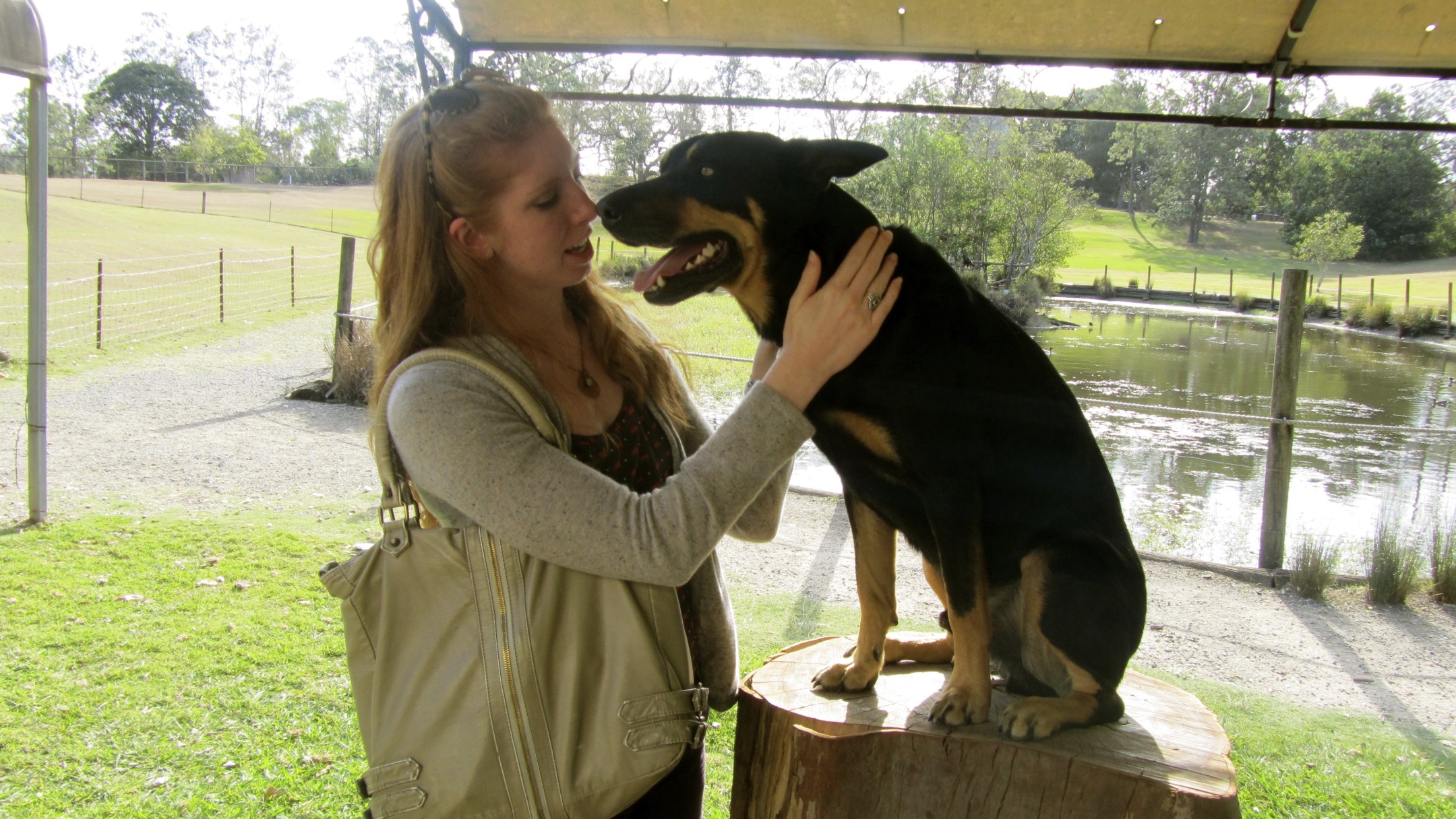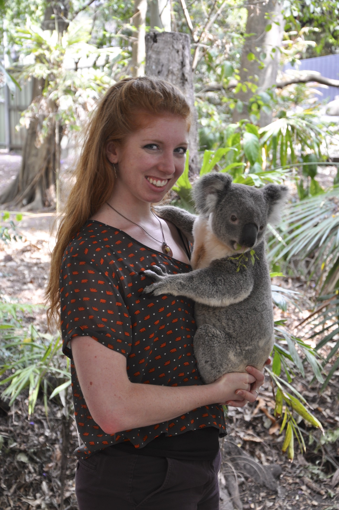 The sanctuary had koalas of all ages. There was a Retirement Home, Kindergarten, and a Bachelor Pad. My favorite place was the Koala Cuddling area. I was able to hold a sweet little guy and pose for a few photos. Although his fur was soft, his rear end was hard and callused. He was eating a eucalyptus leaf, and he smelled like the plant. Considering I have a eucalyptus allergy, I was very glad I loaded up on allergy meds!