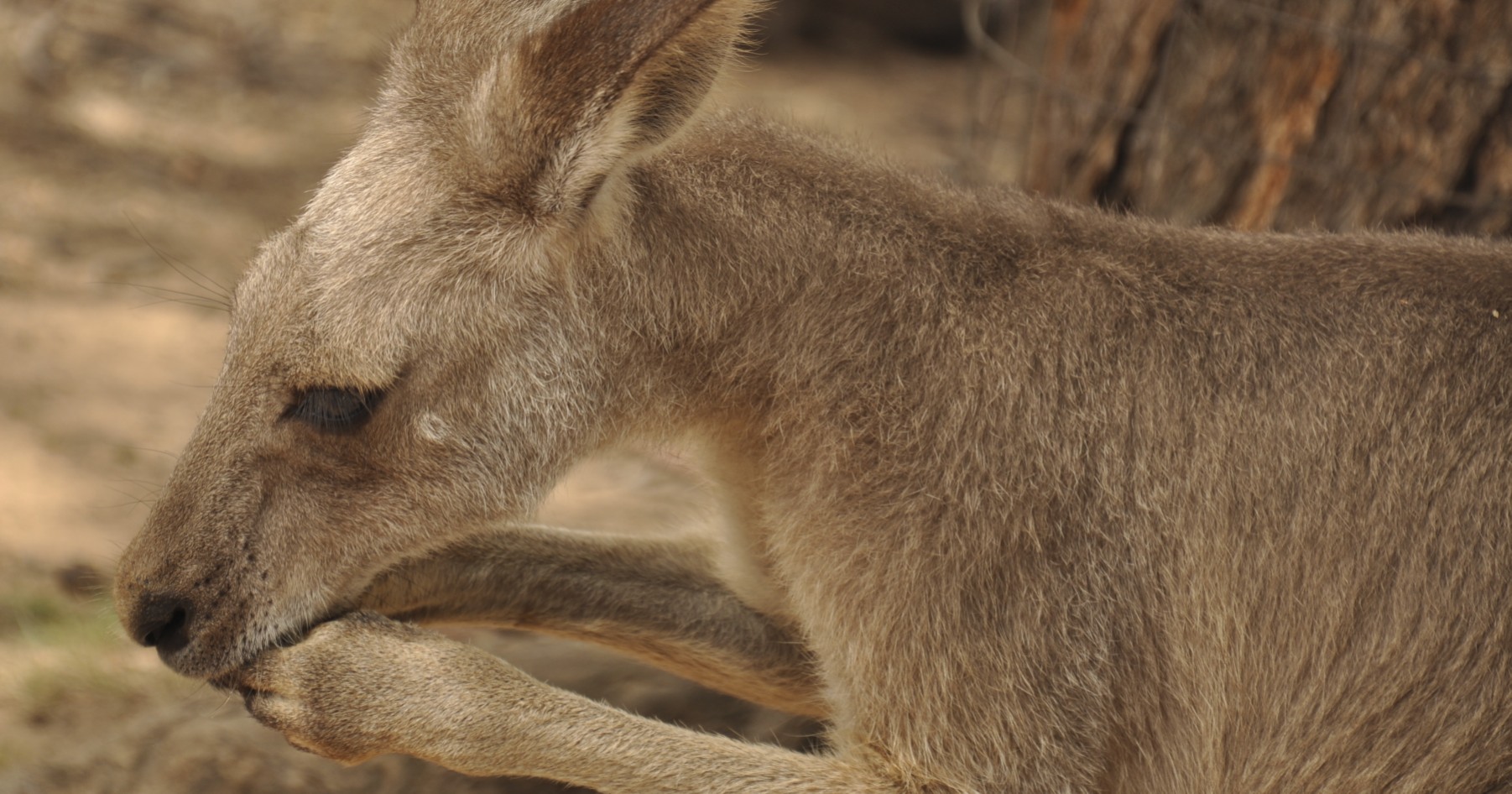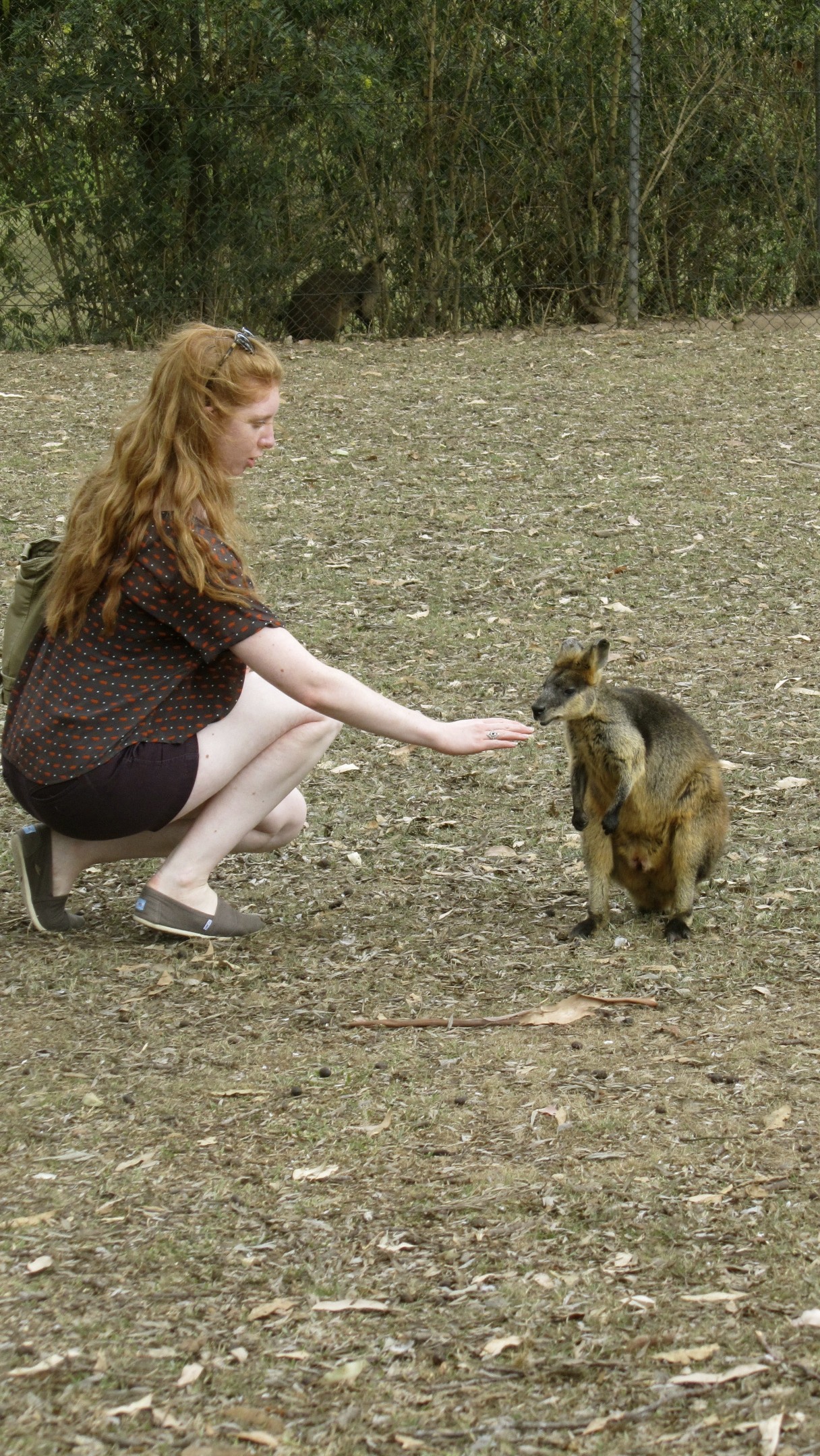 My first stop at the sanctuary was a large field full of kangaroos and wallabies. I fed some of the kangaroos, and was able to pet a wallaby. I loved seeing the kangaroos hop around, though they usually walked on all fours. They have very short arms, so they looked rather awkward walking!