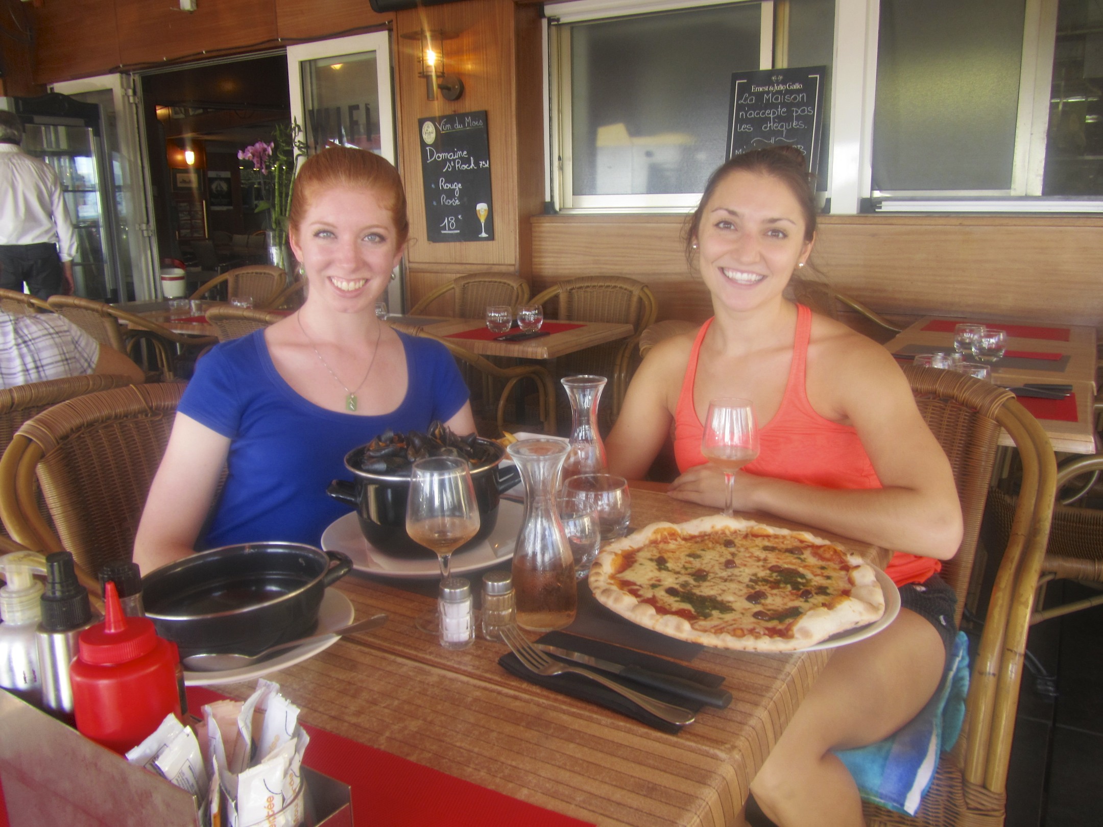 Once on land, we started perusing the menus at restaurants near the beach. We settled on a small restaurant with a covered patio. I ordered mussels, which ended up being large enough to feed a family of 5, and my friend had a pizza. The food was great, as was the house rose we both ordered.