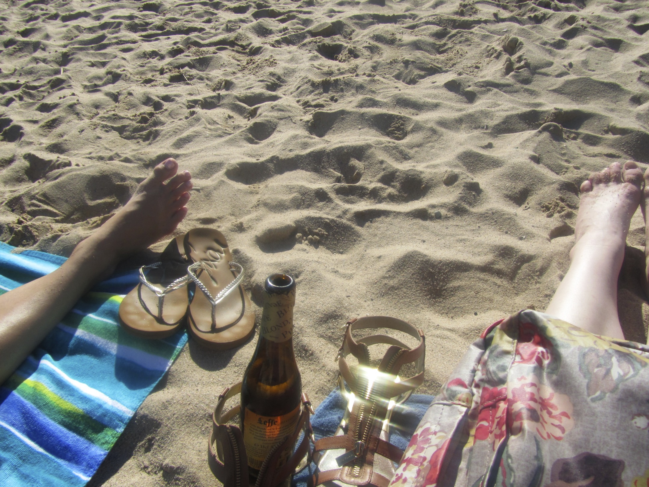 After lunch, we went looking for a good wi-fi spot. We found a small cafe that fit the bill, so we ordered some beers, sat outside, and took some time to connect with the outside world. Once we were satisfied, we bought 2 beers to go, then headed to the beach.