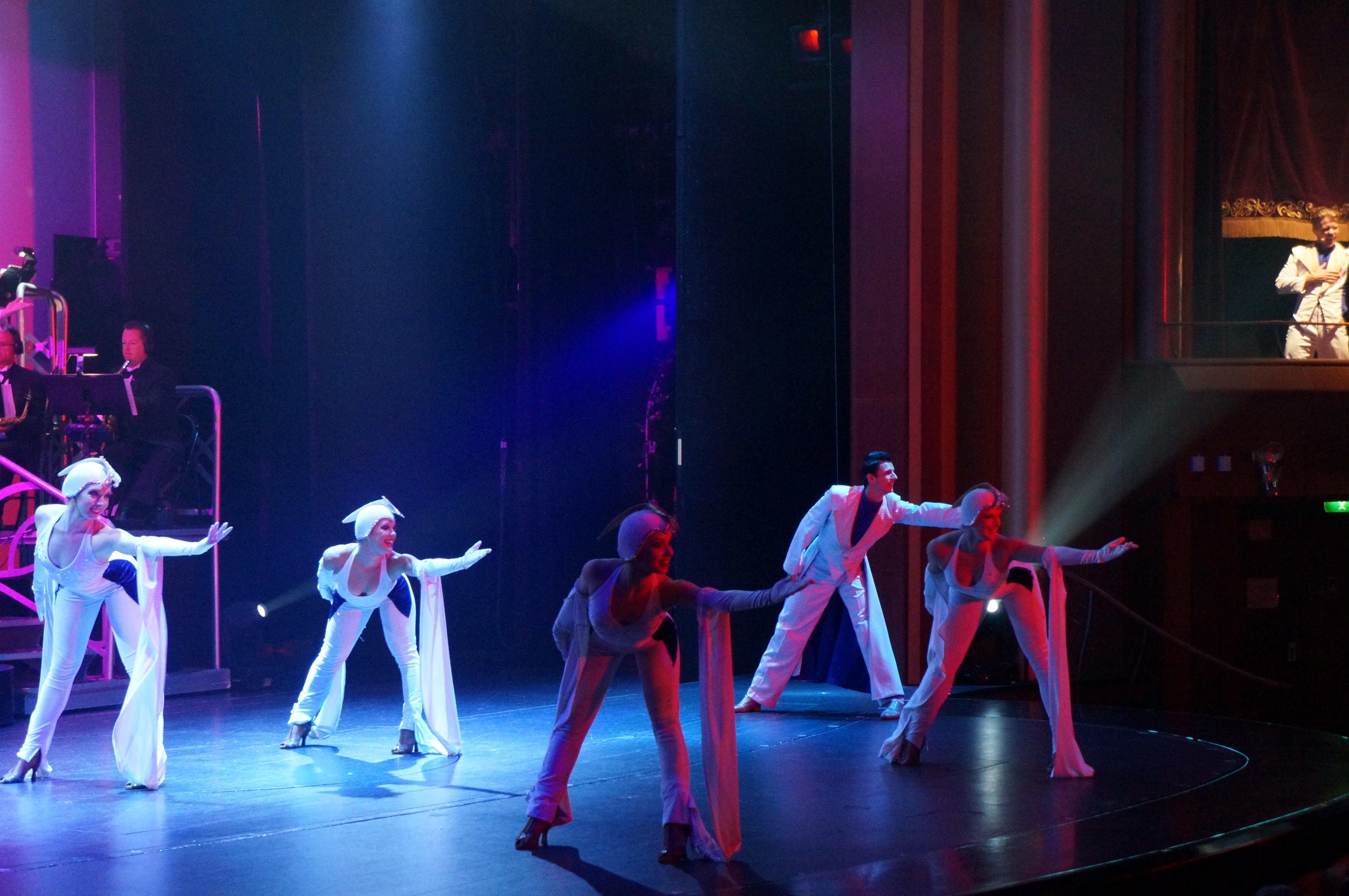 Friday was a very long day! We had our “unofficial run” in the morning, during which we performed our Broadway show with lights and mics for members of the staff. It was a little unnerving to have an audience, especially for my Cell Block Tango monologue, but it went pretty well! We won’t run that show again until we are on the ship! In the afternoon, we ran the Movies show. It was our first run with lights, and just the second full run of the show!