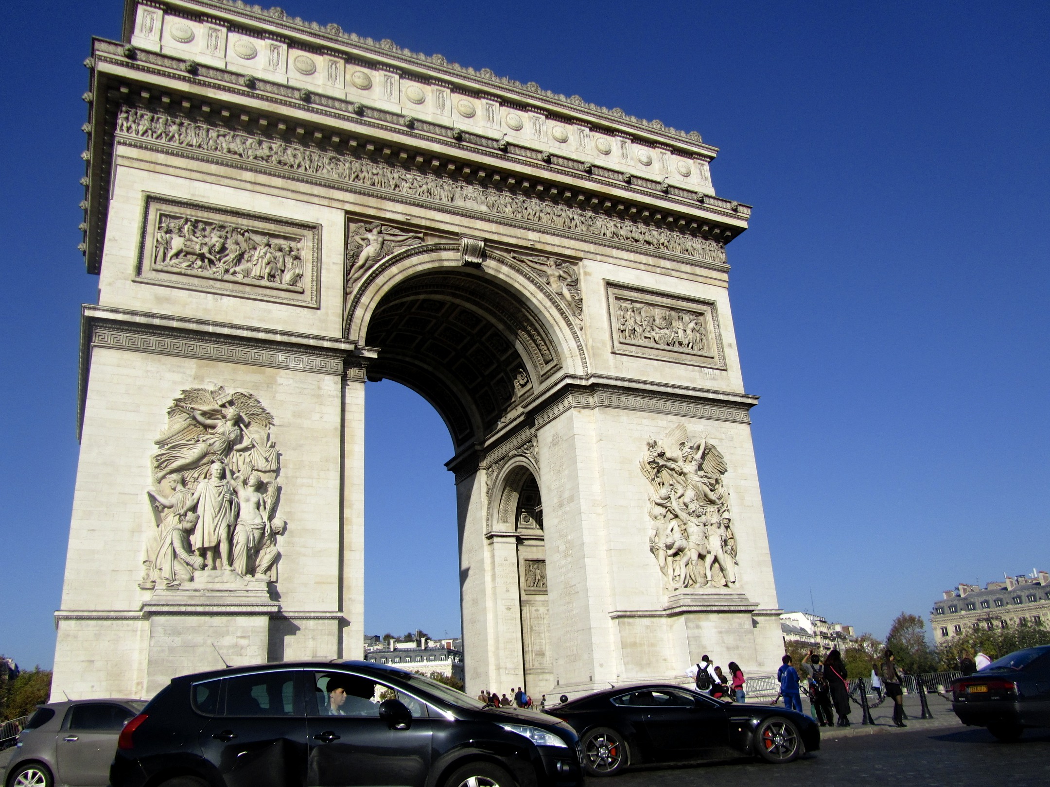Upon reaching Paris, our driver (I can’t remember his name, so I’ll call him Francoise) started taking us around the city to see some of the famous monuments. Our first stop was the Arc du Triumph. I’ve seen similar arches in New York, Lisbon, and Bucharest, but this one is the largest and most impressive. People were able to go up to the top of the arch, but we decided we’d rather see more than wait in line.